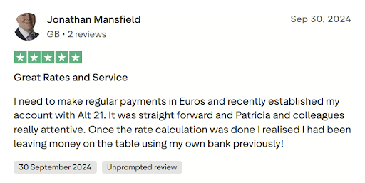 For most UK SMEs reaching this point, Alt21 is ideally positioned to meet that need: forward contracts, FX options and limit orders are core to the platform rather than add-on features.